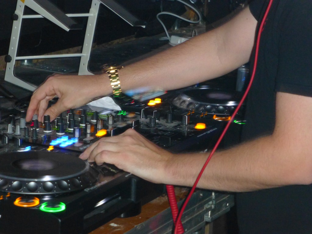 At 1:20 we went back inside. Ozzy gave back the 2 plastic cups to the bar, then I saw Mike walking by. I told Ozzy… we hurried to the DJ booth. We stood on the left side of it. When Mike saw us he came over to say hello. Ozzy and I got a cuddle.