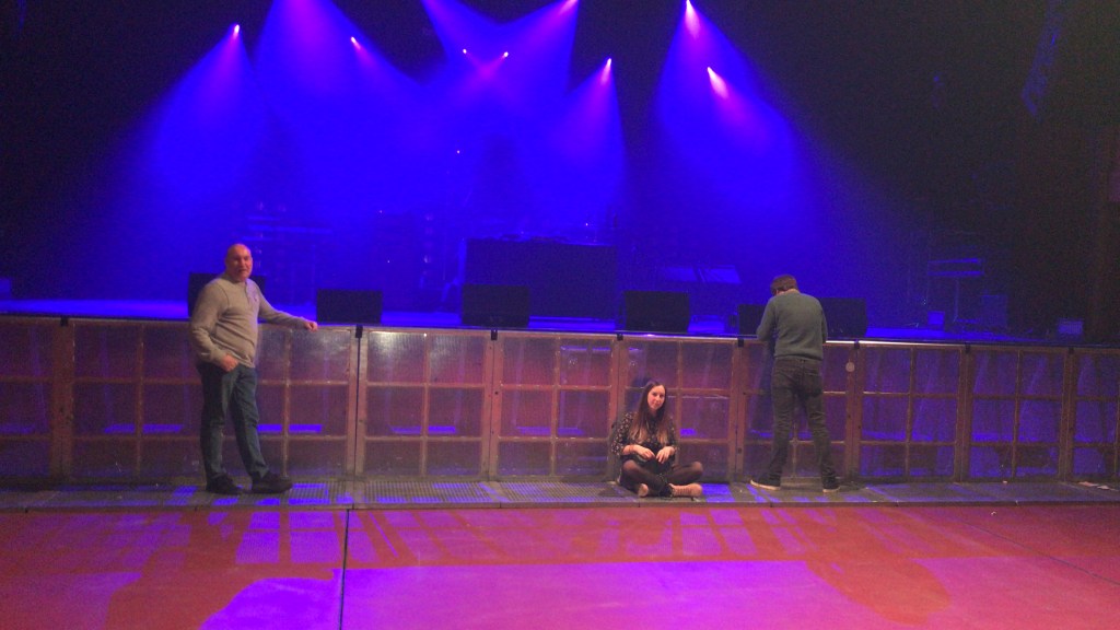 At 18:00 we parked the car in Brussels. We had some food on the way when we put some petrol in the car. We walked towards the venue. Only 5 minutes walk. Oh… here is the tour bus 1 second later… oh… there is Mike!!! We said hello, I got a cuddle. Mike is going to bed. How lovely!! (Wish I could take a nap).