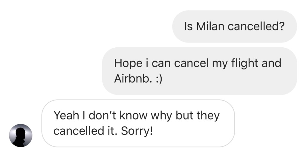 We were supposed to go to Milan in Italy next week, but for some reason the venue cancelled the gig. I guess we’re not going.