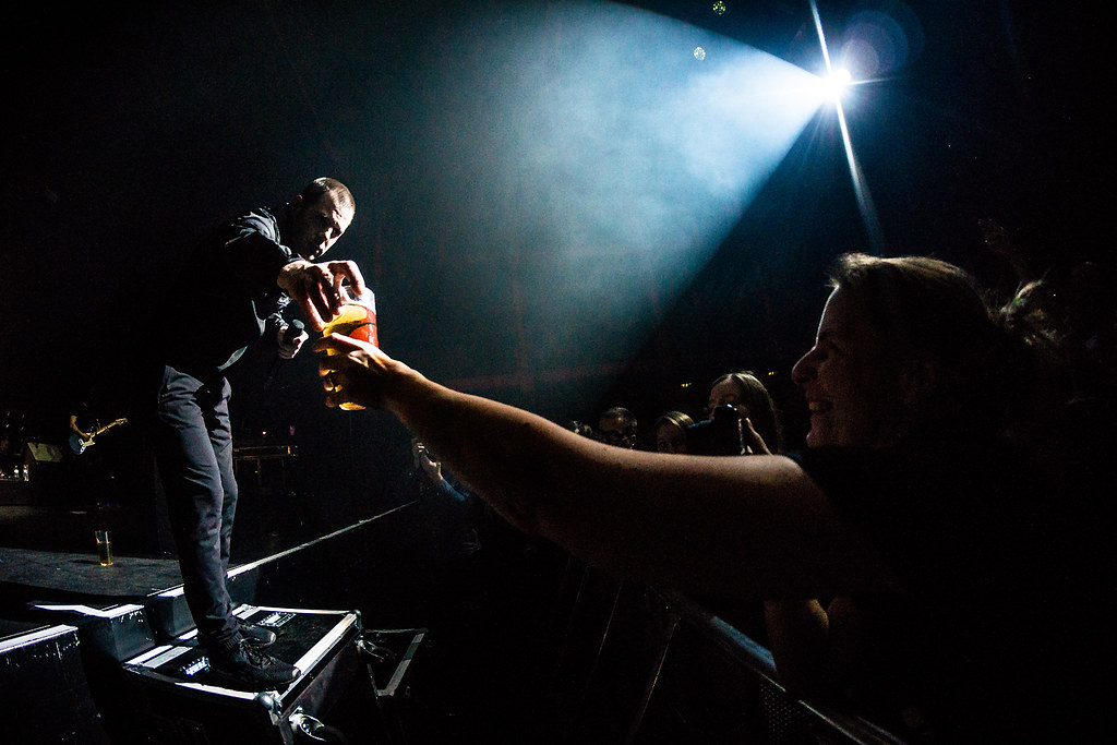 At 19:00 the doors opened. While we were waiting Rob and Sickers walked by. I got a hug from Rob. We sat down at the barrier.