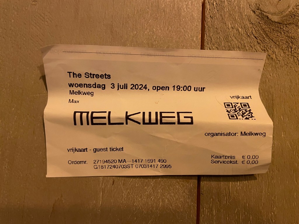 We’re going to Dan Murphy’s. We meet up with Matthew and Anya. They had been to Anne Frank house today and they did a boat trip. At 7 we go to the venue to collect the tickets. This time I got asked how many people I brought with me, so I got the +3, I asked for. Thanks so much Tim for helping me out again! I got a Streets hoody from Matthew and Anya. Thanks so much guys!!! Love you! I love the hoody so much (I nearly live in it).