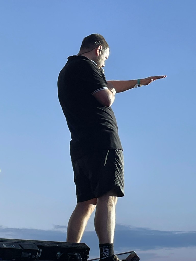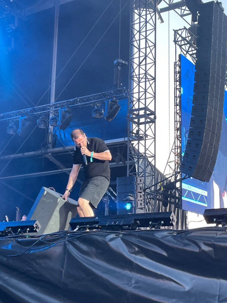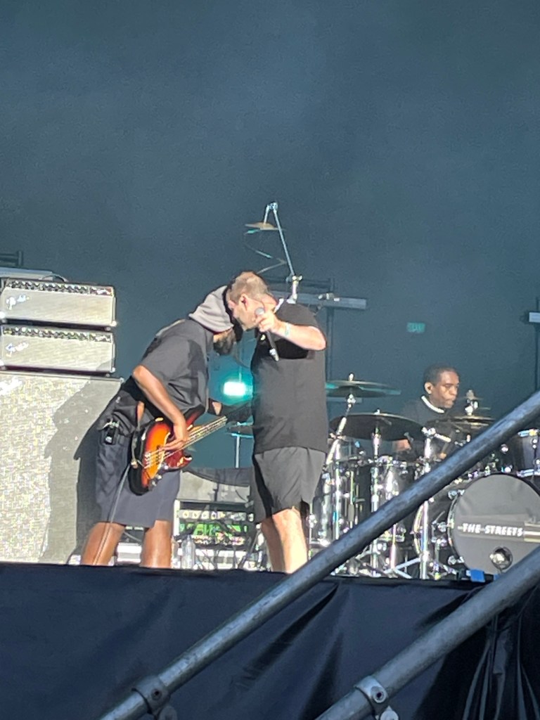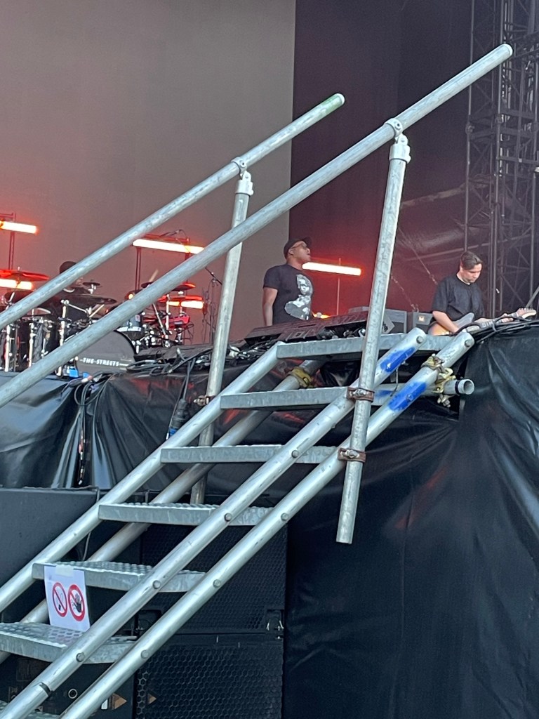 We have to walk to the entrance. I asked Baz and Cassell for help. Cassell had promised Ollie (The Streets archive on Instagram) his drumsticks. But Ollie has a wheelchair and struggles getting to the front or go to any gigs at all. So I helped him. Baz replied, that he would organise it.