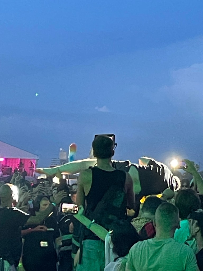 Mike came on stage, he looked at us,, when he got off the stairs, to dive into the crowd, he looked at us. When he came back on stage, he asked: “How are you doing?” He blew me a kiss.