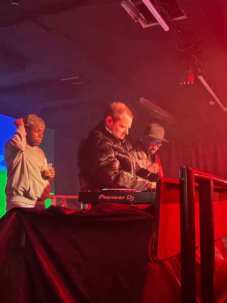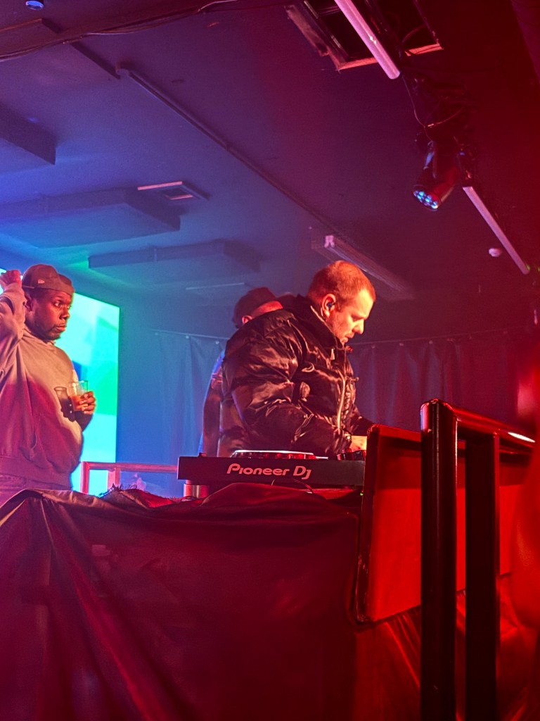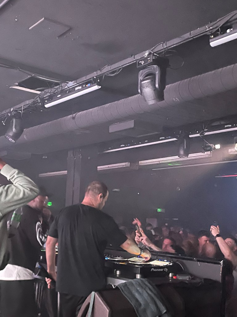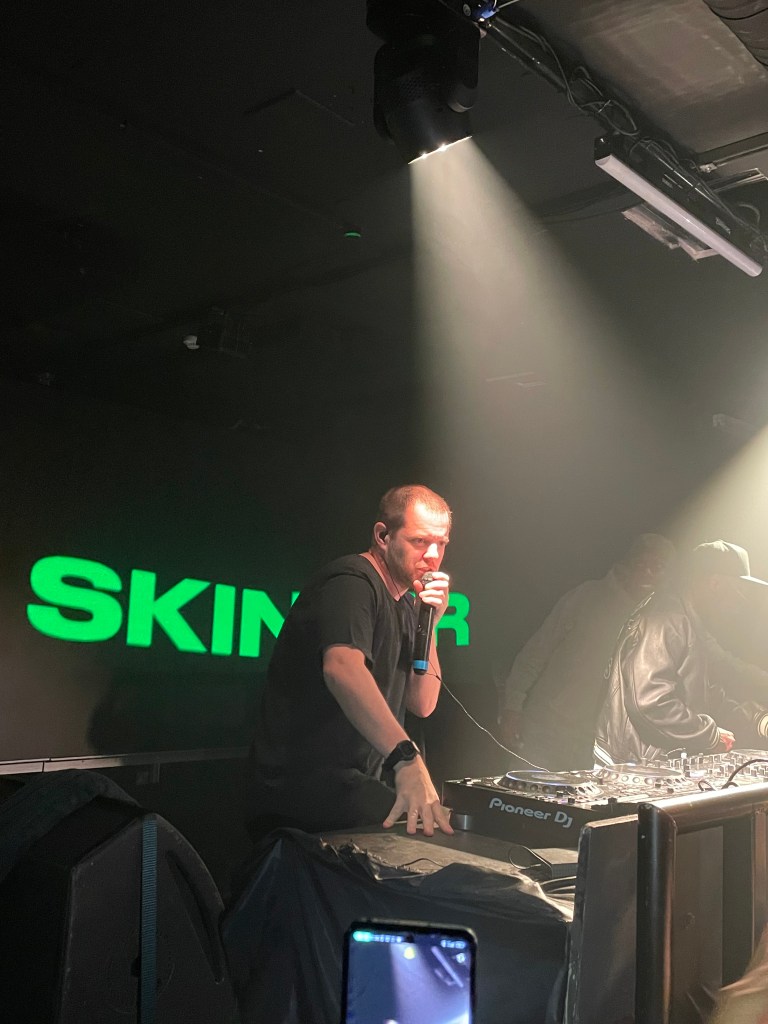 After the gig Mike leaves. He said goodbye to us. We walk back as well. When Mike is gone, there is no point for us to stay here. Ping walked by after a few minutes. He gives us a sip from a bottle Hennessy. Then Tom walks by. And asks if we’re ok. I get to thank him. In the meantime DJ EZ is playing. Seen him last year in Tottenham.