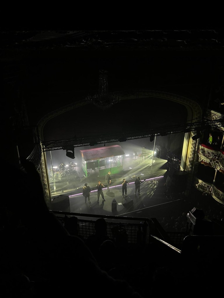 Just after 6:30 we joined the queue it’s a bit longer then expected, but not to bad. Aoife, Ollie and Amber join us. I love the fact that many people recognise Ollie from his Instagram. At 7 the doors open. We go inside. We’re up front!!!!! Aoife joins us as well. Ollie had special accessible seats, but in a cage.He’s not an animal…… Luckily he could come to the front and sit besides us.