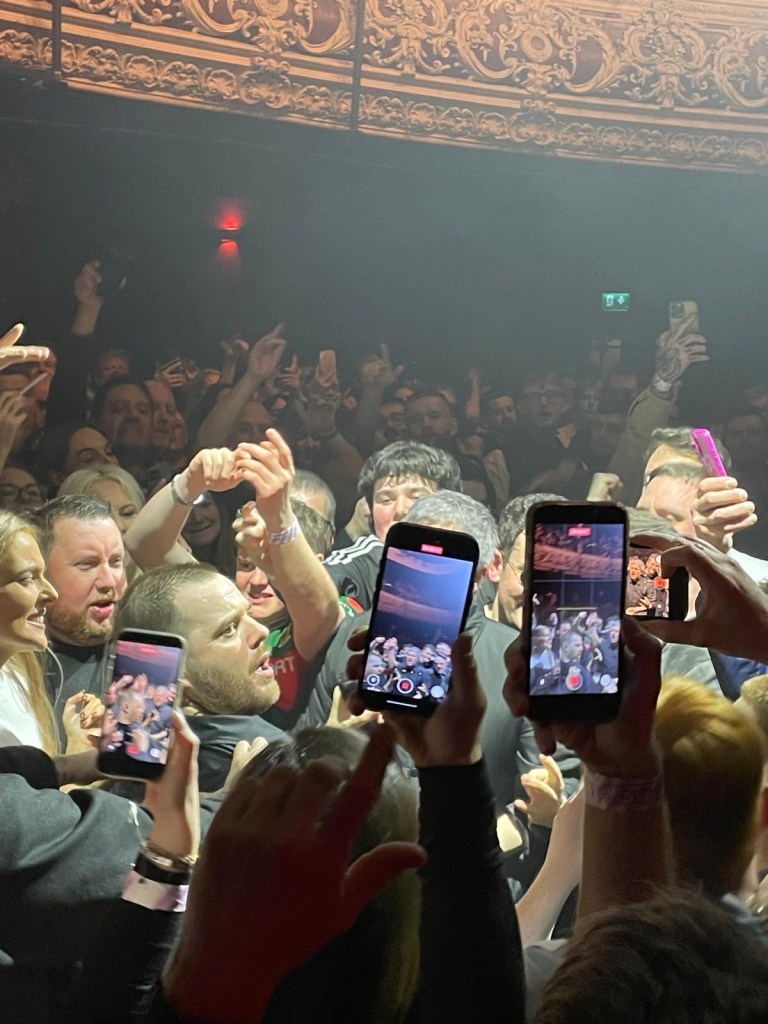 After a few minutes Olly (the roady) and Baz came inside. They joined us. And Cassell came in as well, he also joined us. There were some other fans as well. They wanted to give Cassell a pint, but he already got a pint from Olly and Baz, so I said to them “get me one please” and they did. How lovely!! I joked to be honest, but that was lovely. They thought we were with the crew earlier. I told them we werent, but they didn’t believe us. When Olly, Baz and Cassell joined us, we seem very untrustworthly now. haha