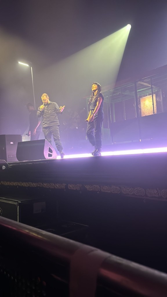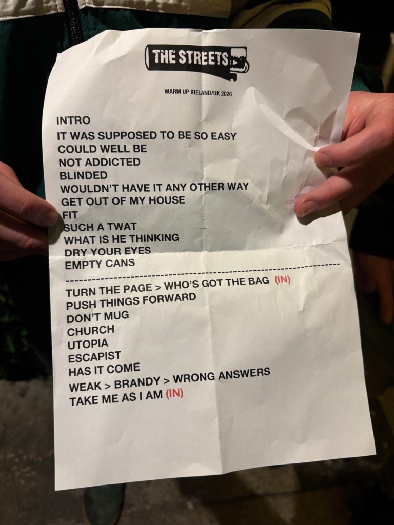 So good to see her. It’s been a while. She had some food, we had a drink. Then we walked to our side of the Liffey. To meet up with Ollie and Amber. We may call him Rolly, because we get confused when we talk about him. Cos obviously The Streets have a roady called Olly as well. We have a few drinks, but not to many, When we’re up front I don’t want to leave my spot.