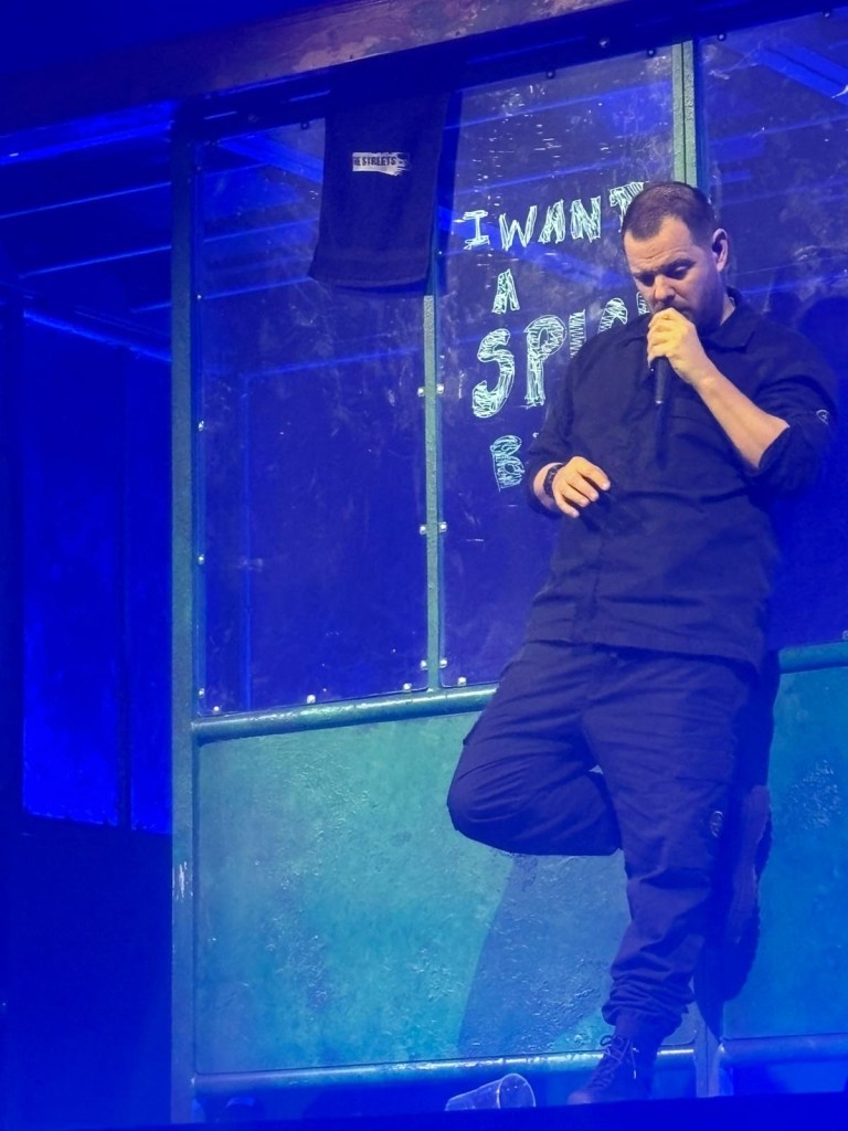At 9 it was time for the Streets. The curtain dropped and OMG there is a fucking busstop on stage! Wow!!! Goosebumps.
