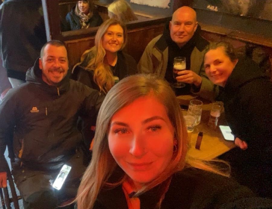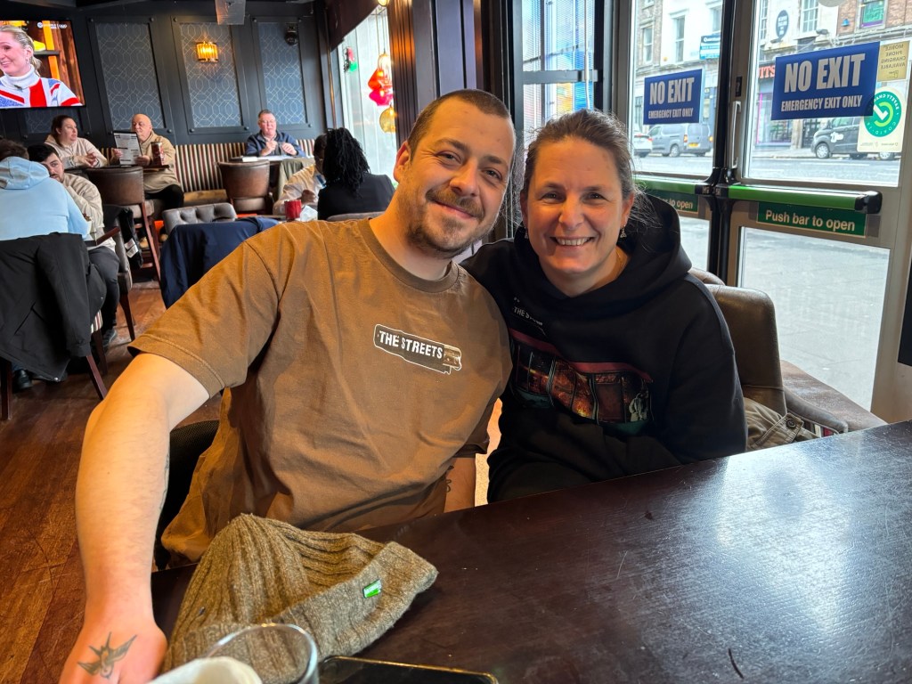 After a while Wayne, Ruth and Max walked in. We said hello. We saw the tourbus in front of the pub. We went outside but it was so cold. We decided to go back in. We have pretty decent seats. Wayne, Ruth and Max went back to the bus. They said goodbye to us. We met Ruth and she introduced herself to us. She was amazing.