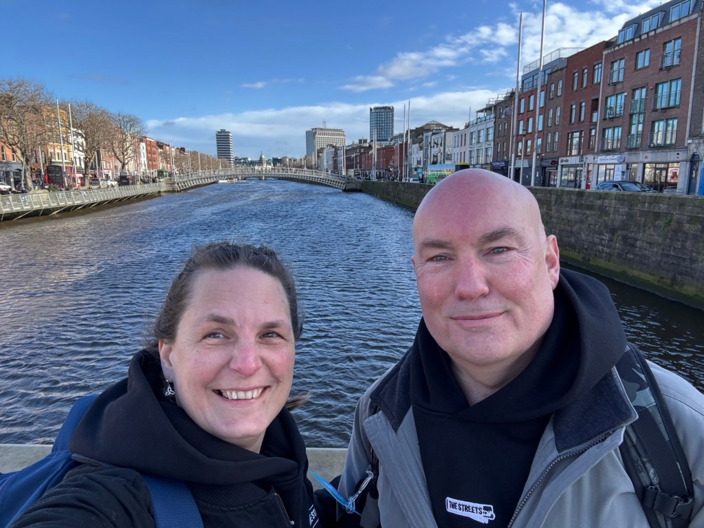 Ollie, Amber, Ozzy and I took a taxi to the hotel. We couldn’t check in yet, so we went shopping instead, only I got a message from Aoife, that she was there already, we decided to meet up with her instead. It was lovely weather. Cold, but sunny. It was a nice stroll through Dublin.she is in the other side of the Liffey