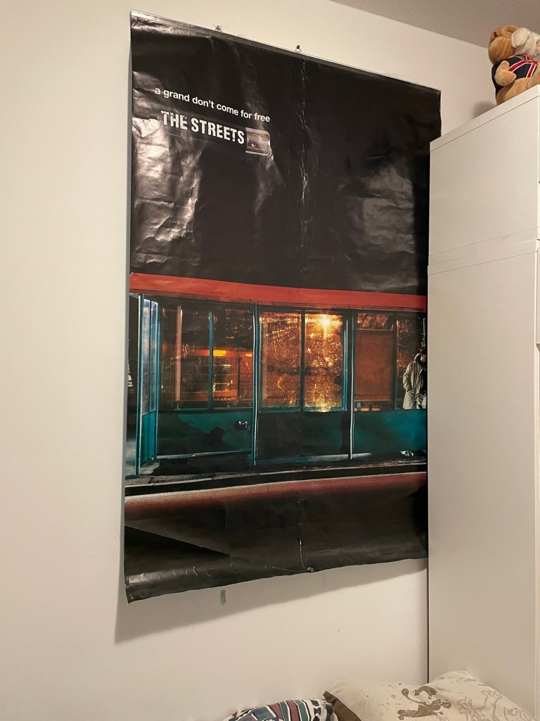 At 6:30 our alarm went off. Roos slept next to me last night. Mark in Roos’ bed. And Ozzy in his own bed in The Streets room. He woke up underneath the a grand don’t come for free poster. Is this a sign? 😂